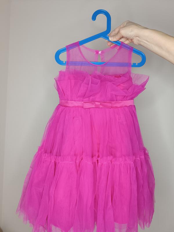 Платье праздничное цвета фуксия или ярко розовое. Примерно на 5-6 лет, рост 116-122. Лиф подкладка хлопковая. Низ подкладка хлопковая и фатин слоями. Длина 62 см. Ширина по талии 30 см. Есть украшения под платье для волос.