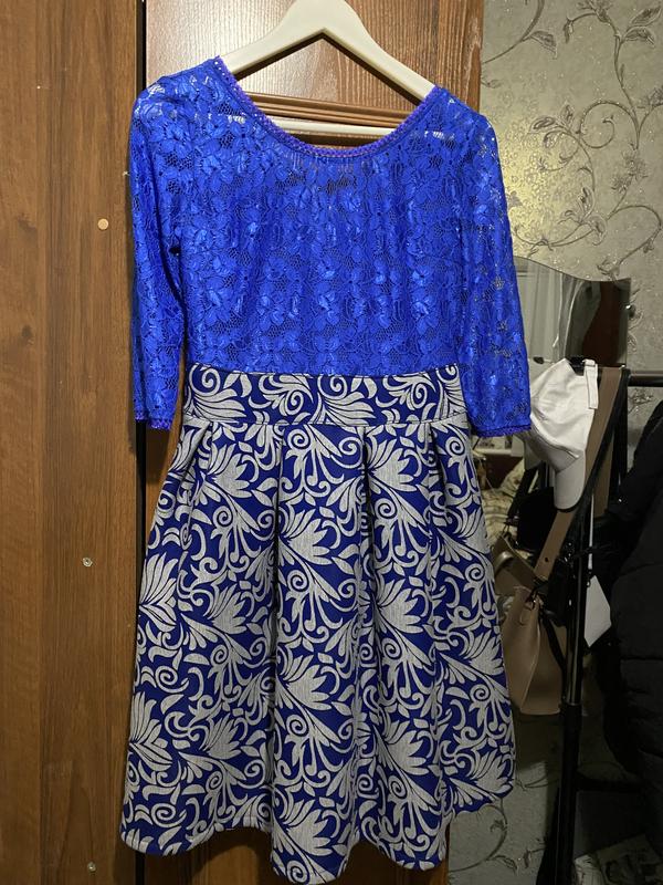 Детское платье синего цвета, верх из кружева с подкладкой, низ теплая юбка. Пишет 42 размер подойдет и на 44. Идеальное состояние, одевалась 1 раз. Замеры: длина от плеча - 88, полу обхват талии - 36, ширина по плечам - 32, длина рукава - 36