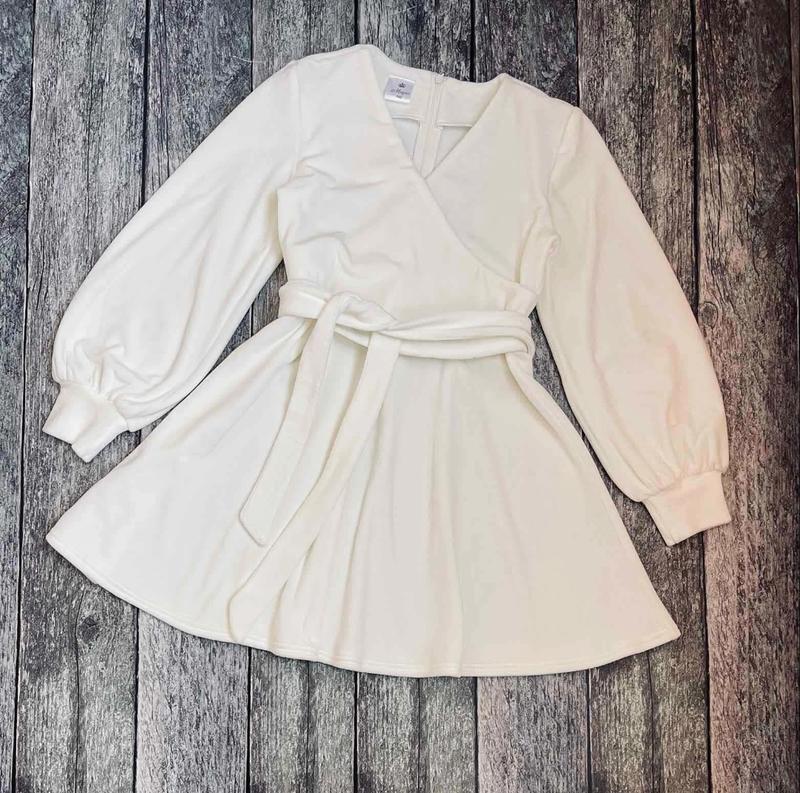 Стильное платье для модниц По спинке к поясу застегивается на молнию. Спереду на запах. Пояс в комплекте. Ткань королевский велюр, мягкий и нежный. Замеры: 140 длина - 69см, рукав от плеча - 52см, полуобхват груди - 38см 146 длина - 75см, рукав от плеча - 54см, полуобхват груди - 39см 152 длина - 79см, рукав от плеча - 57см, полуобхват груди - 41см 158 длина - 83см, рукав от плеча - 58см, полуобхват груди - 44см 164 длина - 87см, рукав от плеча - 63см, полуобхват груди - 45см Мс