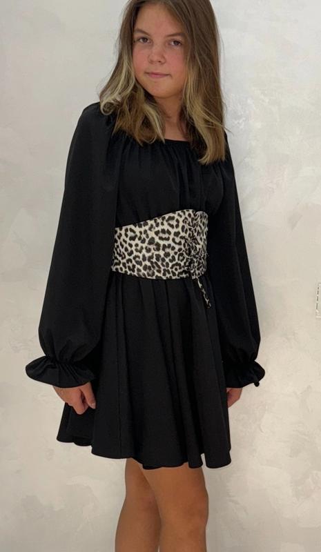 Стильное платье с корсетом. Ткань - костюмная, корсет - эко-кожа. Пояс под резиночку. Корсет снимается. Замеры: 140 длина - 78см, полуобхват груди - 40см, рукав - 54см. 146 длина - 80см, полуобхват груди - 42см, рукав - 57см. 152 длина - 83см, полуобхват груди - 44см, рукав - 60см. Мс