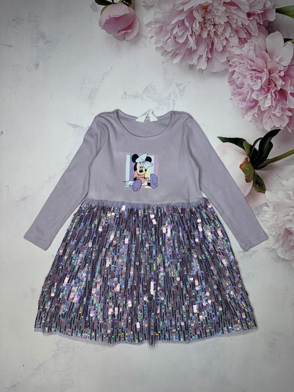Платье с юбкой из пайеток Верх рубчик Состояние отличное 🏷️Н&М 4-6 лет/110-116 Длина 59(24). Пог 30 рукав 36