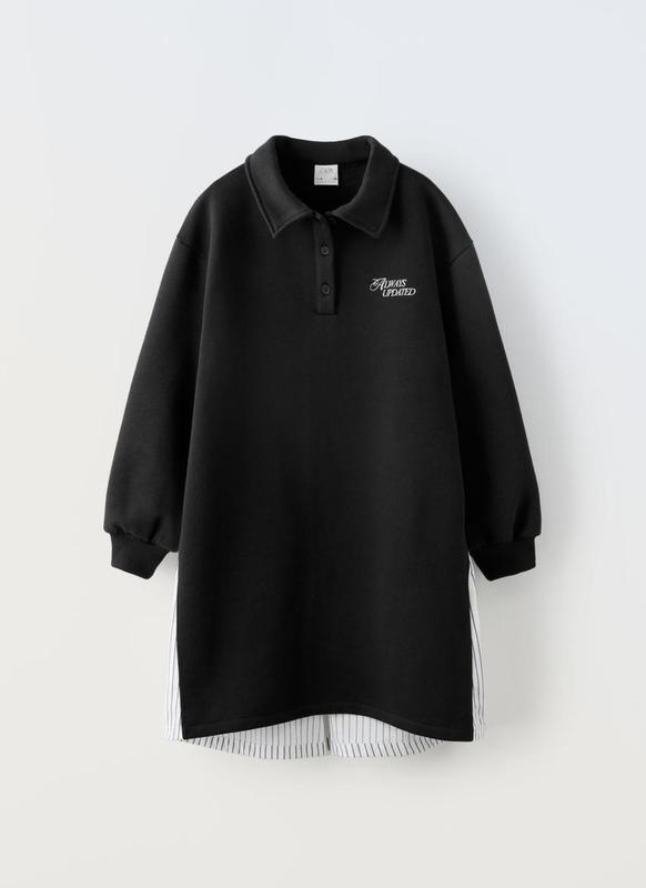 Стильное платье фирмы Zara с имитацией рубашки.Размер 13-14 р.Длина 82-89 см, 49 см,рукав 53 см