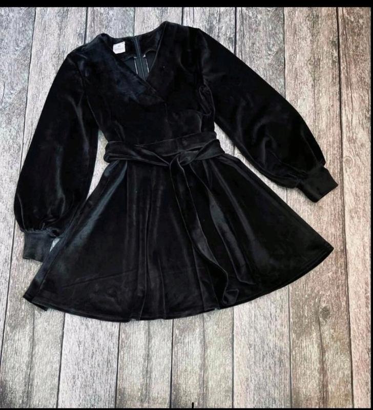 Стильное платье для модниц По спинке к поясу застегивается на молнию. Спереду на запах. Пояс в комплекте. Ткань королевский велюр, мягкий и нежный. Замеры: 140 длина - 69см, рукав от плеча - 52см, полуобхват груди - 38см 146 длина - 75см, рукав от плеча - 54см, полуобхват груди - 39см 152 длина - 79см, рукав от плеча - 57см, полуобхват груди - 41см 158 длина - 83см, рукав от плеча - 58см, полуобхват груди - 44см 164 длина - 87см, рукав от плеча - 63см, полуобхват груди - 45см