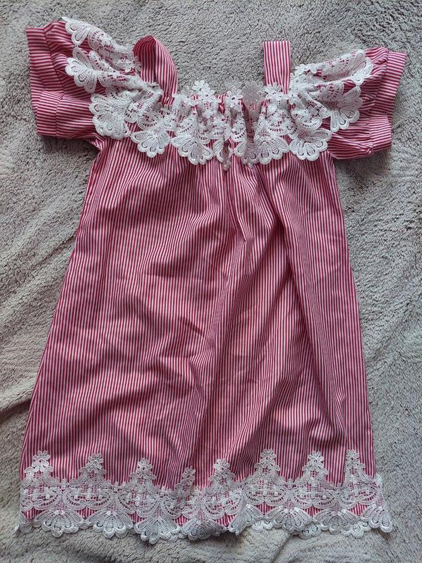 платье в полоскуную 8-10роков. с ажурными вставками.