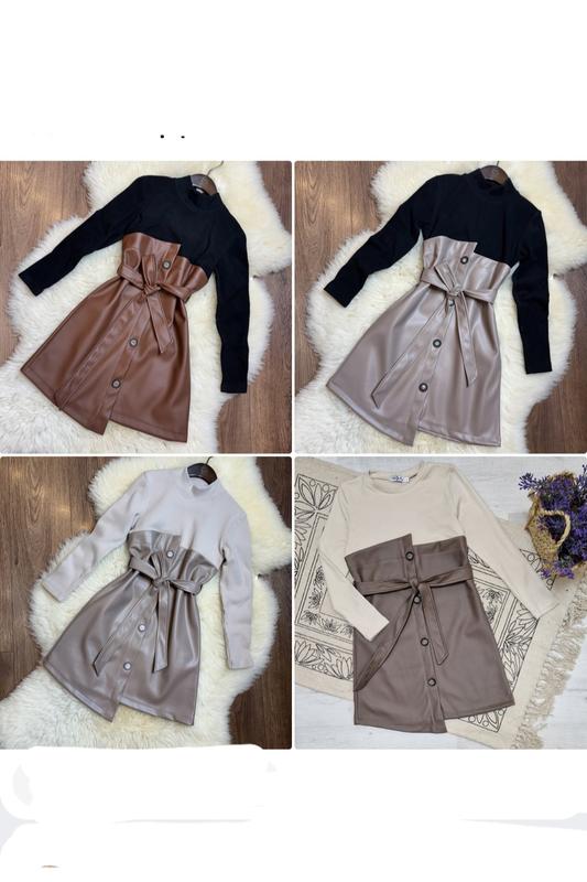 💐 Нереально стильное и модное платье ткань верх рубчик утепленный, приятное к телу + экокожа на замше Украшено декоративными пуговицами, есть поясочек РЕКОМЕНДУЮ ❤ Цена 880 грн длина\рукав\п********** 146-72/48/38 152-76/51/40 158-79/53/42 164-82/55/44 +-2 см 140р-1 шт 146р-1 шт 152р-1 шт 158р-1 шт 164р 1шт