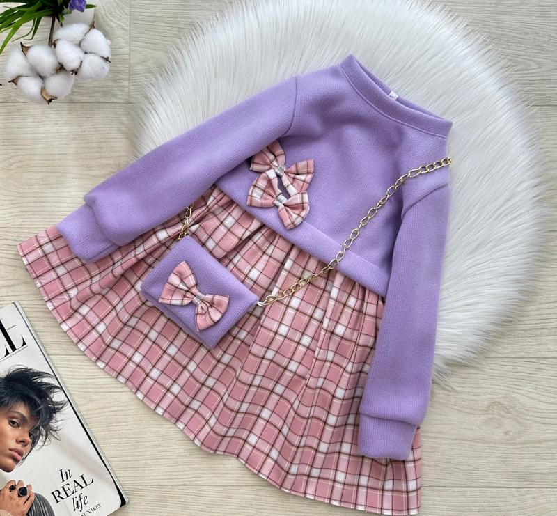 Стильова тепленька сукня для красунь 🎀😍🎀 Верх мʼякенька вʼязка🥰 Спідничка в трендову клітинку 😍 В комплекті сумочка 👛 Позаду регулюється пояском👌🏻 Тканина: верх- вʼязка/ спідниця- турецька клітинка💓 Виробник: Україна 🇺🇦 ЗАМІРИ +/-1-2см!!! ▫️р.110- довжина від плеча 57см/рукав від плечевого шва 38см /ПОГ 30см/ довжина спідниці 33см