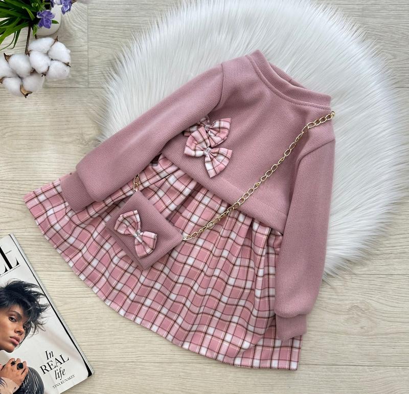 Стильова тепленька сукня для красунь 🎀😍🎀 Верх мʼякенька вʼязка🥰 Спідничка в трендову клітинку 😍 В комплекті сумочка 👛 Позаду регулюється пояском👌🏻 Тканина: верх- вʼязка/ спідниця- турецька клітинка💓 Виробник: Україна 🇺🇦 ЗАМІРИ +/-1-2см!!! ▫️р.104- довжина від плеча 54см/рукав від плечевого шва 35см /ПОГ 28см/ довжина спідниці 31см ▫️р.110- довжина від плеча 57см/рукав від плечевого шва 38см /ПОГ 30см/ довжина спідниці 33см ▫️р.116- довжина від плеча 60см/рукав від плечевого шва 39см /ПОГ 31см/ довжина спідниці 35см ▫️ ▫️р.128- довжина від плеча 66см/рукав від плечевого шва 43см /ПОГ 33см/ довжина спідниці 39см