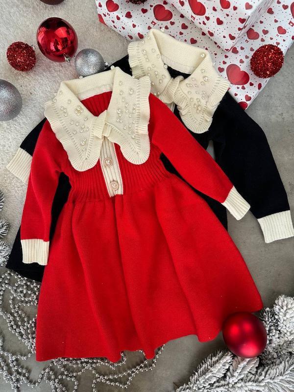 Дуже красива та вишукана тепленька вʼязана сукня. Комір прикрашений перлинками( тримаються дуже міцно на зкльопках). Талія на резиночці. Посадка просто шикарна. Чудовий варіант подарунку на новорічні свята. Доступні розміри: 90-Довжина 50, ширина 21,рукав 33. 100-Довжина 51, ширина 24, рукав 34. 110-Довжина 57, ширина 24,рукав 37. 120-Довжина 59, ширина 25,рукав 40. 130-Довжина 63, ширина 25,рукав 43.