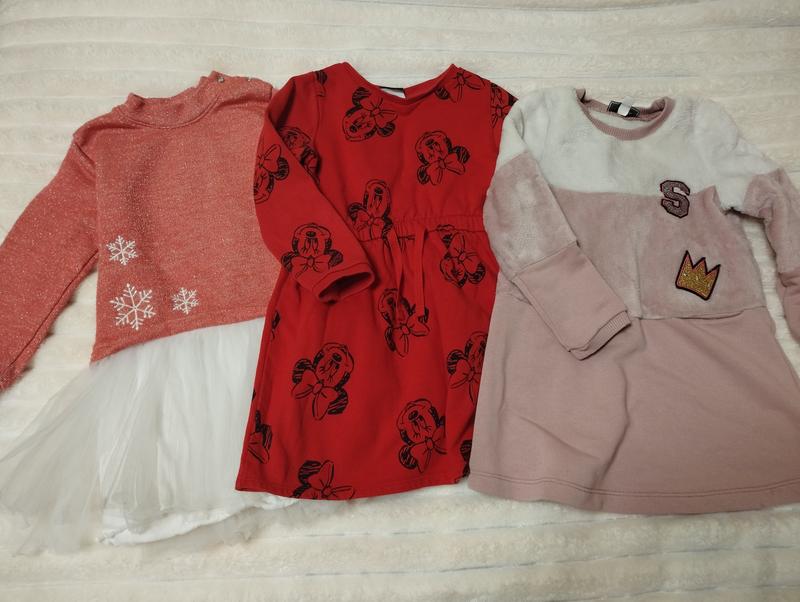 набор платьев на девочку с 2-х до 4-х лет. все в отличном состоянии. замеры платья с фатином рукав 32, плечи 24, длина 50, нарядное, праздничное платье. Красное утепленное, замеры такие же. теплое платье на зиму рукав 34, плечи 22, длина 48, можно и под лосины, очень теплое. платья красиво в садик брать. цена за три платья.