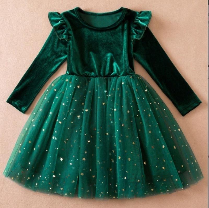 📝 Неймовірної краси святкова сукня💚 🖤 Ваша дівчинка в ньому буде найгарнішою на святі або фотосесії😍 🖤 Верх - велюр, дуже красиво переливається 🖤 Два шари фатину, прикрашені паєтками 🖤 Підкладка - хб 🖤 На плечиках рюшики 🖤 Пояс на резинці 🖤 Гарно тримає форму Розмір 100(3 шт) 110(3 шт) 120(3 шт) 130(3 шт) 140(3 шт) Виміри 100-Довжина 54 см рукав від плеча 33 см пояс 21*2 см 110-Довжина 59 см рукав від плеча 35см пояс 21*2 см 120-Довжина 65 см рукав від плеча 37 см пояс 22*2 см 130-Довжина 69 см рукав від плеча 39 см пояс 22*2 см 140-Довжина 74 см рукав від плеча 42 см пояс 22*2 см Виміри зроблені однієї ростовки Допустима похибка +-1-2 см