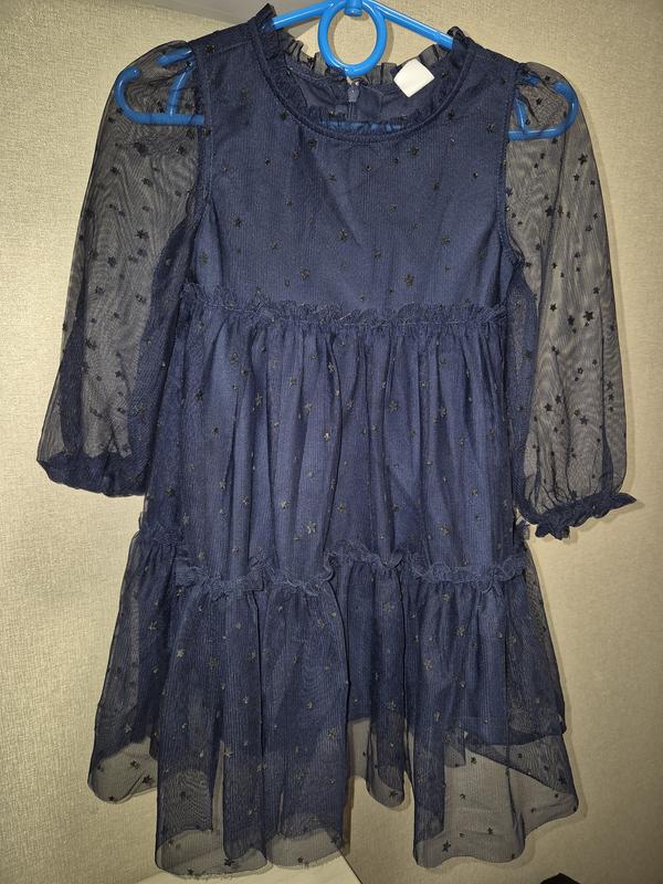 платье фатиновое с подкладкой. на фатине мелких звездочки. фатин мягкий не колючий ззаду на замочку длина 56 см длина рукава 34 см Ширина по грудях 27 см размер 92, полномер