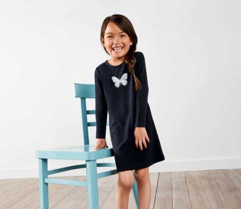 Теплое платье Lupilu с Бабочкой Размеры в наличии: 86/92 Прекрасно подойдет на весенне-осенний и зимний период года. Отличное Немецкое качество фирмы Lupilu! Состав: 55% полиэстер, 42% вискоза, 3% эластан. Замеры 86/92: длина 47, плечи 22, рукав 31, ширина груди 29