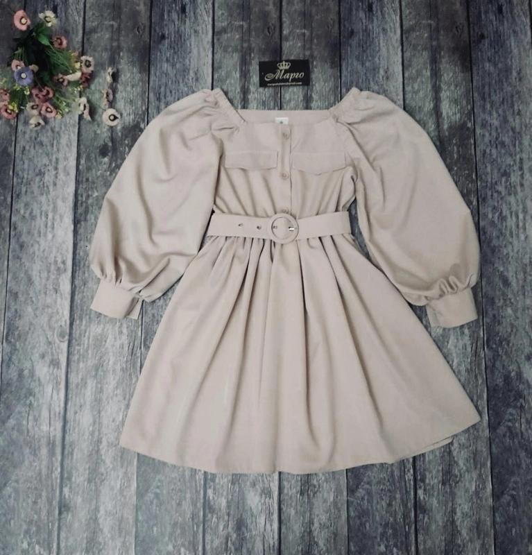 Стильное платье для модниц По переду пуговицы декоративные. Поясок в комплекте. Тканина- костюмна. Замеры: 140 длина - 68см, рукав - 52см, полуобхват груди - 34см 158 длина - 82см, рукав - 64см, полуобхват груди - 42см Мс