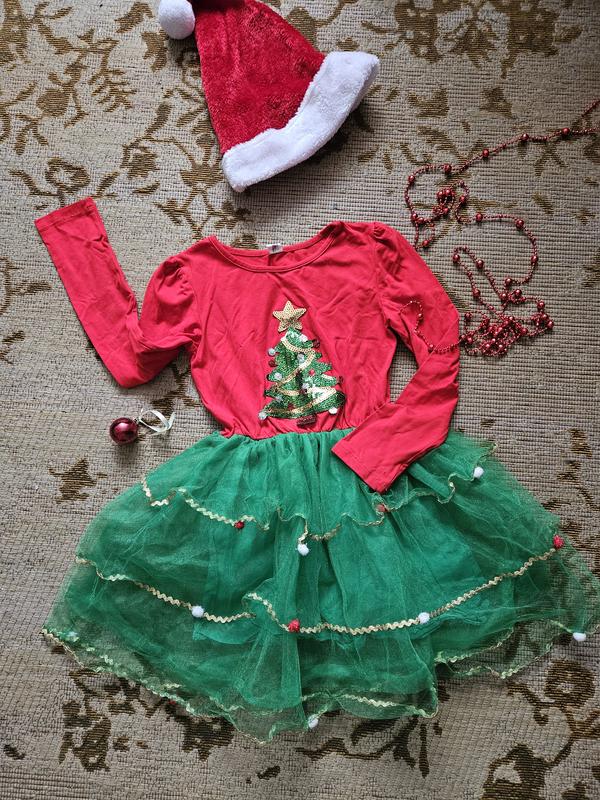 Платье на Новый год. можно быть елочкой, а можно просто в школу, как делали это мы) На 8-10 лет, очень приятная к телу. Замеры: Рукав от плеча 49см Под руками 35см От плеча до выреза 7см От плеча до талии 33см юбочка 40-42см(в зависимости от пышности) Длина платья +-70см.
