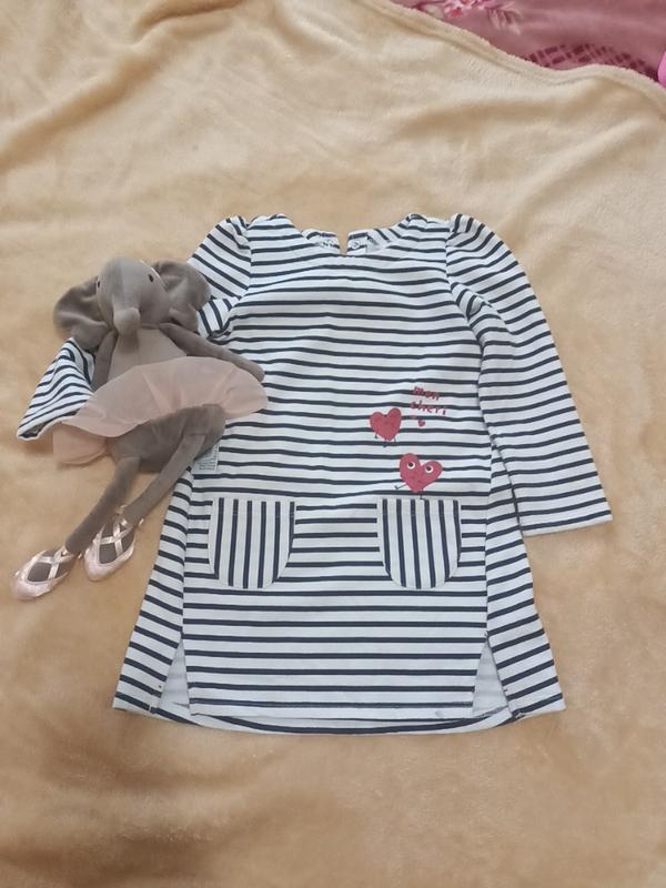 Платье на флисе хлопковое, белое с синей полоской. На девочку 2-3 года 98 см, состояние почти новое. Длина рукава от плеча 35 см., длина самого платья 50см.