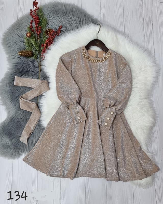 Стильное платье для девочки 134р- длина 73, пог 35, рукав 47 ±2см ткань люрекс на трикотаже с середины приятная к телу(не колется) горловинка украшена цепочкой поясок в комплекті красиво тянется РЕКОМЕНДУЮ! 👉Безопасной оплаты нет. ⚠️Через кнопку КУПИТЬ тельки по полной оплате, поэтому не жмите ее, до уточнения деталей 🚚Новая почта, есть наложка с предоплатой 🚛 Укрпочта- +5грн упаковка (укрпочтой наложки нет ❗️) По оплате и доставке уточняйте дополнительно, к покупке! Возвращение отсутствует, делайте свой выбор обдуманно. Осмотрите товар в отделении, претензии из дома не рассматриваются! конв