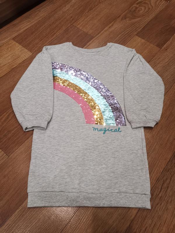 платье-свитшот на флисе TU на 5-6 лет, пайетки переворачиваются.