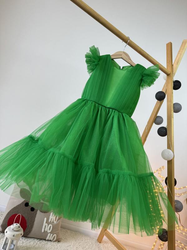Платье пышное длинное 5-8 лет зеленая