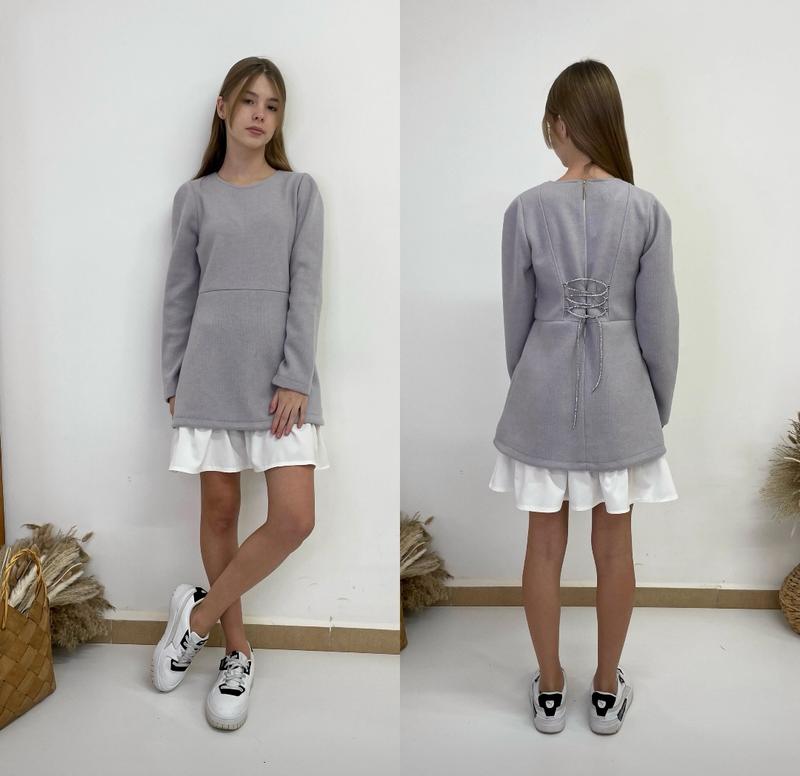 арт 5885 Неймовірна сукня модний крій з ізюминкою на спинці дуже круто виглядає тканина турецька ангора в'язка+ супер софт(спідниця) Супер якість! зріст/довжина/пог/рукав від плеча похибка+-2см 134/70/34/47-1шт 140/73/36/49-2шт 146/76/38/51-2шт 152/78/39/54-1шт 158/80/40/58- Тан