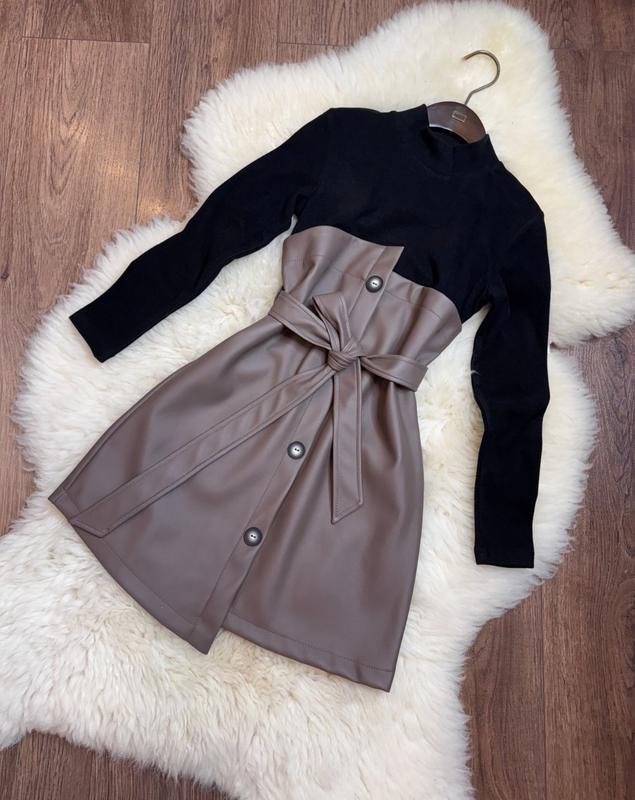 Любимая моделька платья Стильное и модное платье ткань термотрикотаж+эко кожа на замше украшен декоративными пуговицами есть поясок РЕКОМЕНДУЮ! 🎈140(3 шт)-длина 71,пог 37,рукав 45 🎈146(1 шт)-длина 72, пог 38,рукав 48 158(1 шт)-длина 79, пог 42,рукав 53 🎈164(1 шт)-длина 82,пог 44,рукав 55 Греб