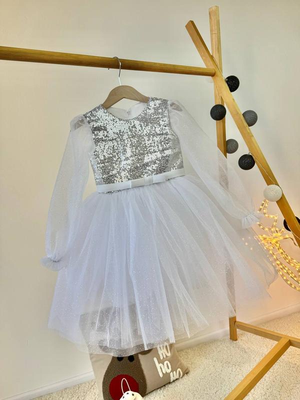 Идеальное пышное платье на любой праздник. Произведено в Украине! Качество -люкс! Низ- несколькослойный фатин, евросетка, подклад- атлас. Идеально держит форму. Сзади- на потайной молнии, дополнительно-корсетная шнуровка. Верх- пайетки. Размер: визуально 3-5 лет.Рукав 44, длина 62 см, полуобхват талии 28 см. Цена: 1050 грн