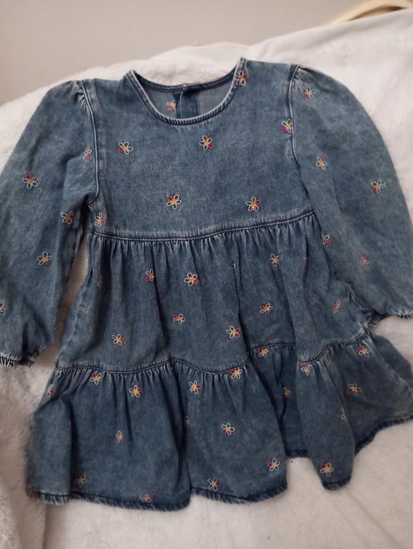 Джинсовое детское платье трехярусное с вышитыми квиточками 4-5 летi George