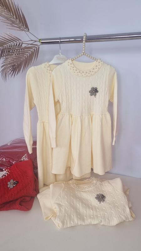 Вязаные платья с жемчужинами люкс качество 📏 120 Длина 55, рукав 39, пог 29 130 Длина 57, рукав 41, пог 31