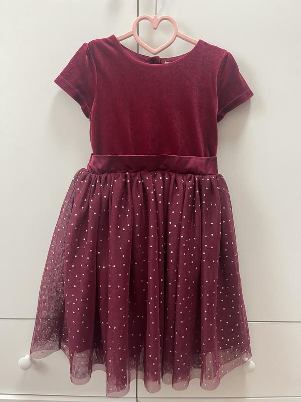 Платье в идеальном состоянии, бордового цвета Рост указан 116, на 122-128 тоже подойдет Верх бархатный, юбка из фатина блестящего, атласным поясом можно регулировать талию