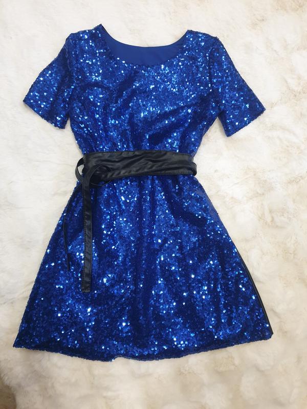 ☀️Праздничное платье для девочки, крой трапеция ❣размер 140 (можно и на р. 134) перед: тканина з пайетками зад: экокожа на подкладке есть пояс Производитель: Украина, тм Pretty kids❤