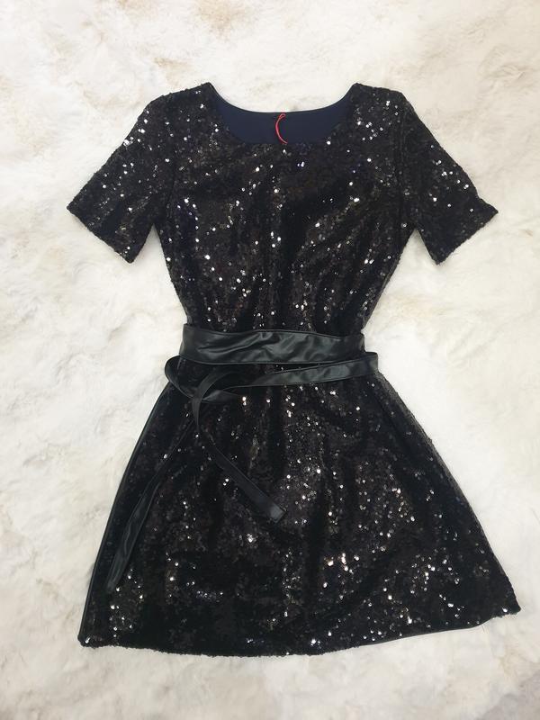 ☀️Праздничное платье для девочки, крой трапеция р.140 можно и на р.134 перед: тканина з пайетками зад: экокожа на подкладке есть пояс Производитель: Украина, тм Pretty kids❤
