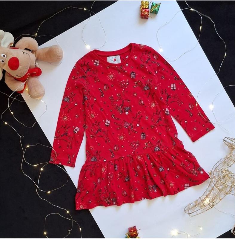 ✔️ Платье синее в белый горох с новогодним принтом, рисунки невредимы ✔️ 5-6р ✔️ F&F ✔️ Нового ✔️ долж-60, шир-31,руки-40
