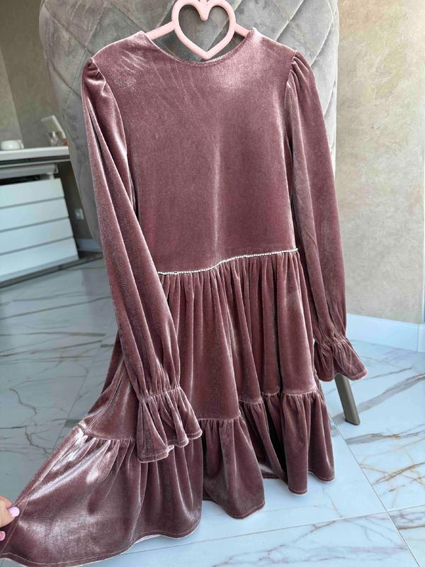 Шикарна НОВИНОЧКА невероятно красивое и нарядное платье в трендовых цветах ткань велюр, приятная к телу качество отличное рекомендую! цвет шоколад размеры: 134-1шт 140-1шт 146-1шт 152-1шт 158-1шт
