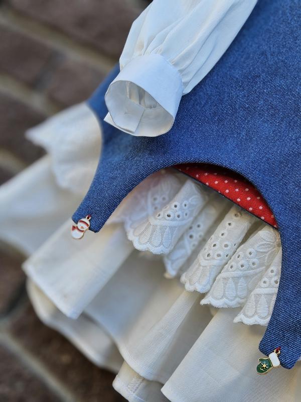 Платье с кружевом + сарафан с новогодней имитацией.Застежка, пуговицы