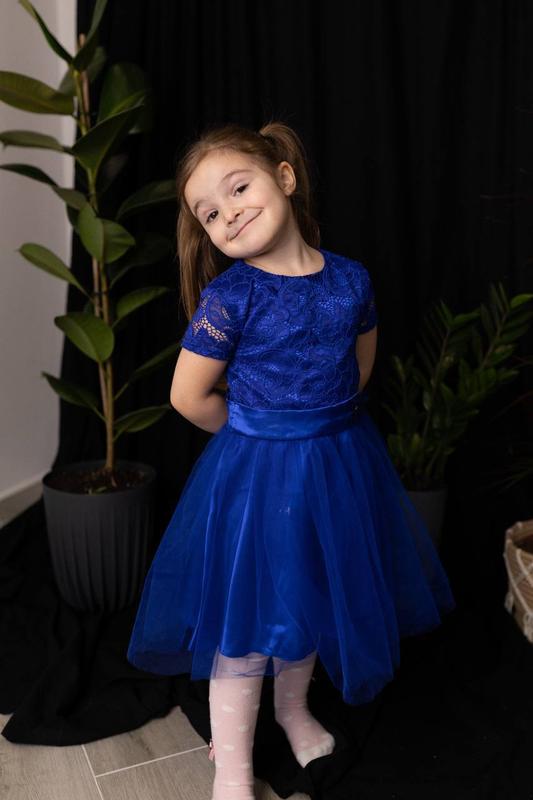 Плаття Синє Короткий рукав Розміри 104, 110,116 Матеріал: верх гіпюр, знизу євросітка і атлас ,замок ззаді, пояс зав’язується 104- плечі 28, по гр 29, дов 60, 110- плечі 29, по гр 30, дов 64, 116- плечі 30, по гр 31, довж 66, знизу атлас, зверху гіпюр, замок ззаду , зав’язується на поясок. ддд