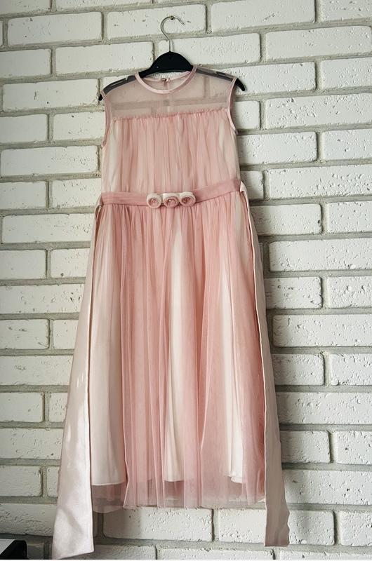Нарядное платье для девочки Viani, на 3-5 лет. Цвет пыльная Роза .сзади молния плюс завязываеться на бант.внутри подкладка. Длина 83 см, ширина по груди под мышками 28 см, длина до пояска 26 см. Состояние отличное. Одевалось 1 раз. Дополнительно есть обруч с цветком-180 гр.
