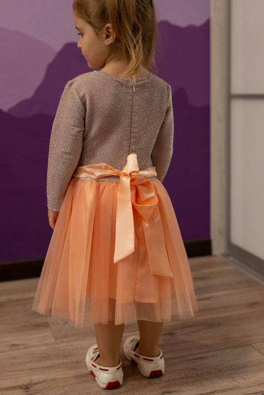 Платье персик, длинный рукав Размеры 104,110,116,122; Материал: верх люрекс, юбка евро-сетка, подкладка под юбкой, замок сзади, поясок завязывается. 104- плечи 28, рук 36, по гр 29, дол 60, 110- плечи 29, рук 37, по гр 30, длин 64, 116- плечи 30, по гр 31, рукам 38, длиж 66, 122- плечи 31, по гр 32, рукам 39, дол 68