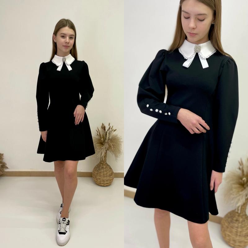 Сукня "Перлинка" тканина Алекс имеет умеренный стрейч за счет необычного рукава украшенной пуговицами, та воротника который добавляет платья изысканности и элегантности, платье становится праздничным и в то же время очень удобно в использовании, на любой случай Воротник земный украшен брошью СУПЕР КАЧЕСТВО! рост/длина/пог/рукав от плеча 140-146/70/30/45-1шт 146-152/73/31/47-1шт 152-158/76/32/50-1шт 158-164/80/33/53-1шт 164-170/83/34/56-1шт