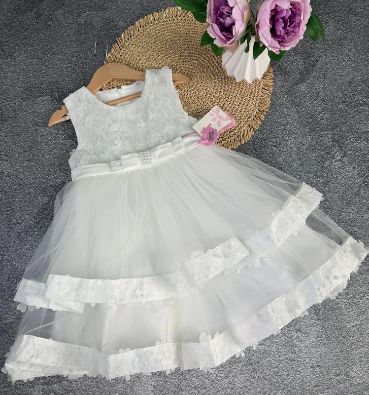 Невероятно красивое нарядное платье для ваших принцесс 🔥 Украшена цветочками и блестками Идеально подойдет для праздников, фотосессий и дней рождения ❣️🔥🥰 Ткань -атлас +многослойный фатин💥 Подкладка -хлопок Сзади застегивается на молнию 110- длина 59 см, шир 29 см. (4 шт) 120- длина 63 см, ширина 31 см. (5 шт) 130- длина 69 см, ширина 33 см. (4 шт) 140 - длина 74 см, ширина 34 см. (4 шт)