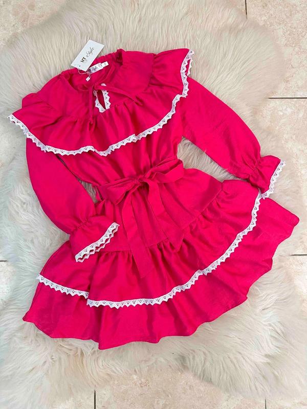 🌸Чрезвычайно нежная Платье Ткань лен-жатка премиум качества 👍 У комплекті поясок Размеры: рост-длина/рукав от шеи/ пог 134-70/52/49 146-76/57/53 158-80/62/56 Арт те