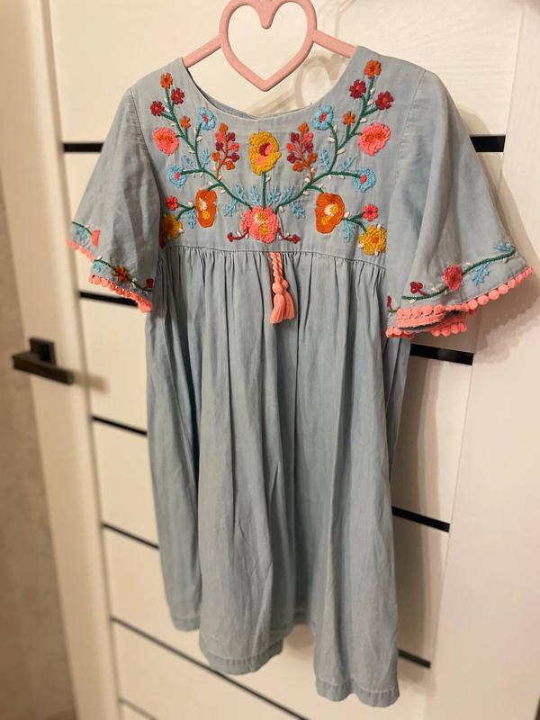 Стильная вышиванка от Некст, изысканный фасон, натуральная ткань, яркая вышивка сделают образ неповторимым. Размер 6-7 лет. Имеет заводской дефект- последнее фото, в носке незаметно