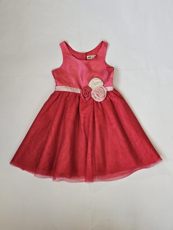 Праздничное платье, платье для девочки h&m Очень красивый переливающийся фатин. 4-х слойная юбка Состояние: идеальный Состав: полиэстер, на 3-х подкладках Размер указан: 4-5роков, 110 см Замеры: * длина - 61 * но груди - 30 * но талия - 28 ************ Подписывайтесь, постоянные обновления