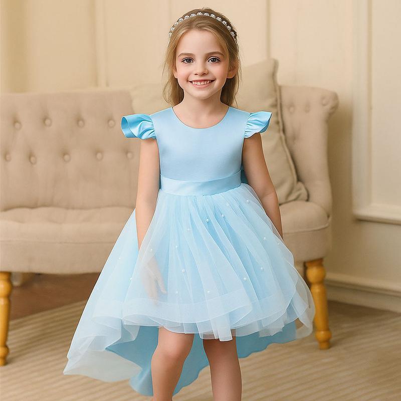 Праздничное детское платье нежно-голубое асимметричное с жемчужинами 110,120,130,140