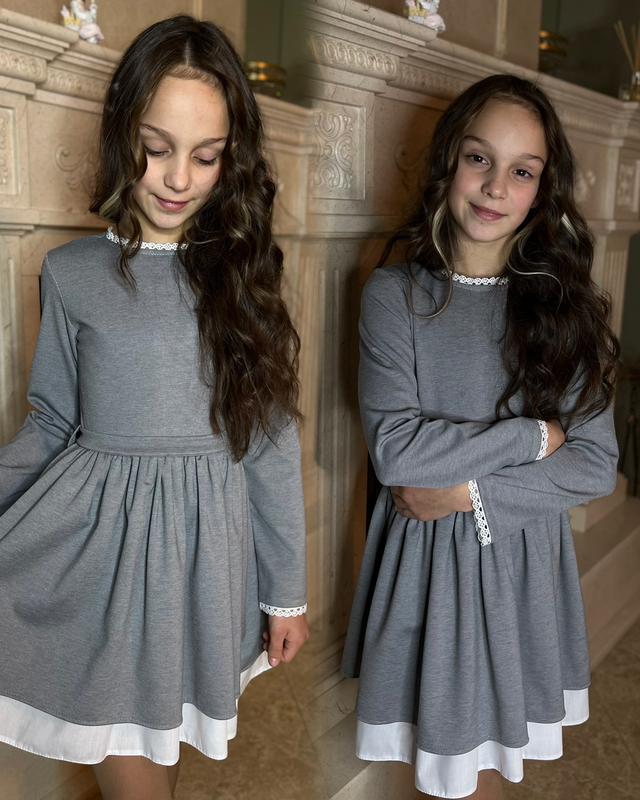 Дууже красивое платье Тканина: трикотаж Подклад: батист Рукава и горловина осадочное кружевом На спинке потайная молния Поясок съемный! Замеры: рукав от плеча БЕЗ кружева/длина от середины горловины с белым подкладом/ пог (полуобхват,ширина) 128 - 44/60/32 134 - 46/64/33 140 - 48/66/34 146 - 50/68/36 152 - 52/70/37