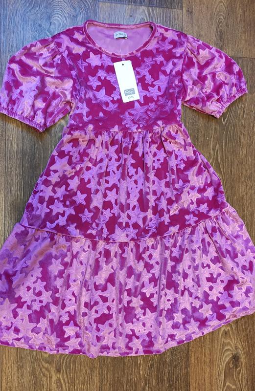 очаровательное бархатное платье розового цвета в звездочки. бренд F&F. Очаровательно переливается на свету. Новая с биркой. Замеры сделать.