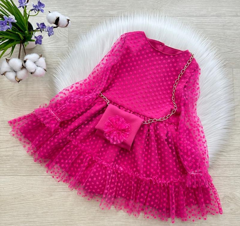 Невероятно красивое платье для маленьких красавиц ✨😍✨ Воздушная, нежная и стильная ❤️ Пышная юбочка 😍 В комплекте сумочка 👛 Застежка пуговица 👌🏻В рукавичках резиночка ☺️ Талия сзади регулируется пояском 🎀 Ткань: евросетка, подкладка-костюмка 💓 Производитель: Украина 🇺🇦 ЗАМІРИ +/-1-2см!!! ▪р.98- длина от плеча 54см/ рукав от плечевого шва 38см / ПОГ 29см / длина юбки 31см