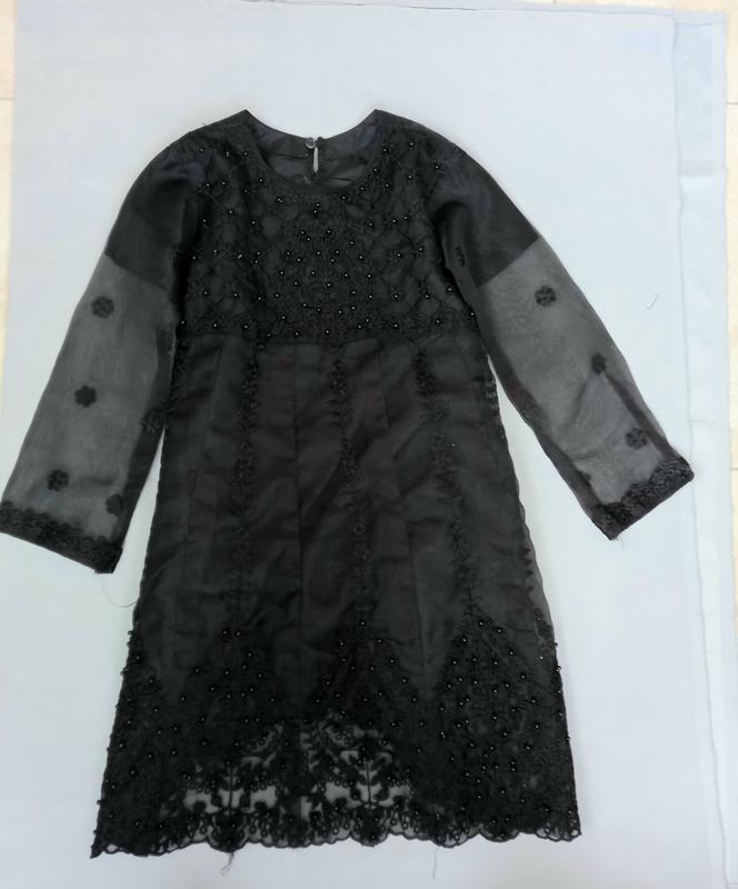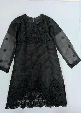 платье из фатина с чехлом украшено бусами и вышивкой длина 73 см по спинке ог 38 см рукав от горловины 52 см
