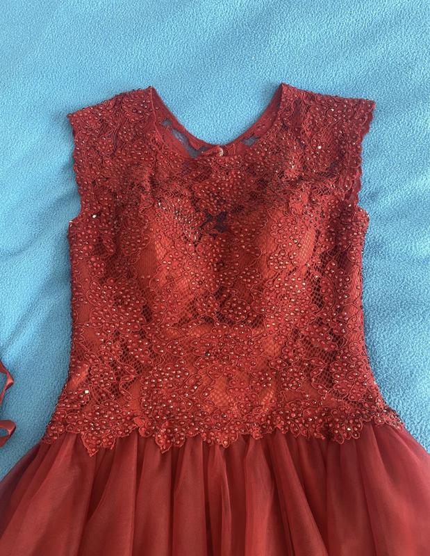 Продам ошатне плаття бордового кольору, без дефектів, все каміння на місці, замок цілий, гудзики на місці, всередині атласна підкладка, довжина спідниці 55см, обхват талії 40см, верх бюстгальтера корсетний.