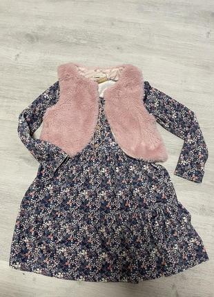 Мягкое платье для девочки, есть пятно на шубке, но должно отопрягаться. Без шубки платье также красиво смотрится)