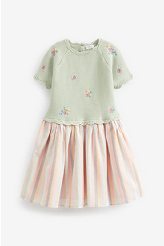 Платье-джемплер с юбкой в мятно-зеленую радужную полоску next на 4-5 лет
