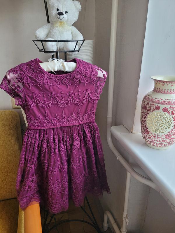 нежное и яркое платье для праздника на девочку 7-8 лет. выполнено из нежного трикотажного гипюра на коттоновом подкладе. цвет марсала, глубокий и изысканный!